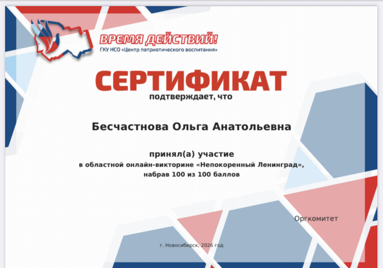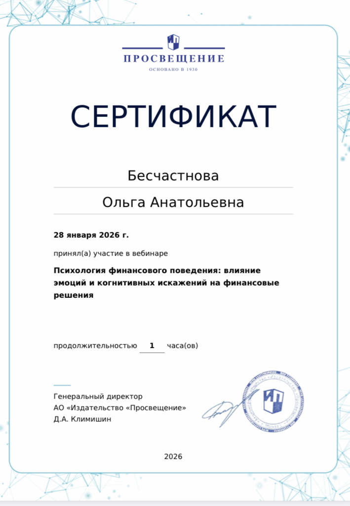 Бесчастнова Ольга Анатольевна