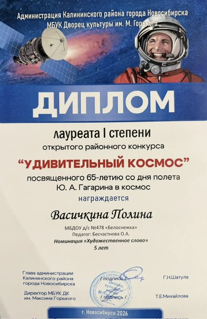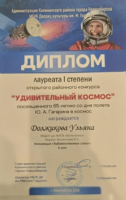 Открытый районный конкурс" Удивительный космос", посвященный 65-летию со дня полета АЮ.А. Гагарина в космос