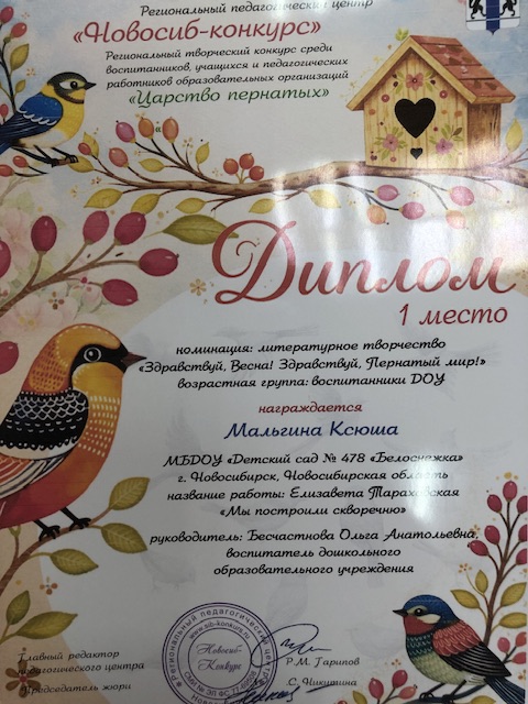 творческий конкурс среди воспитанников, учащихся и педагогических работников образовательных организаций "Царство пернатых"