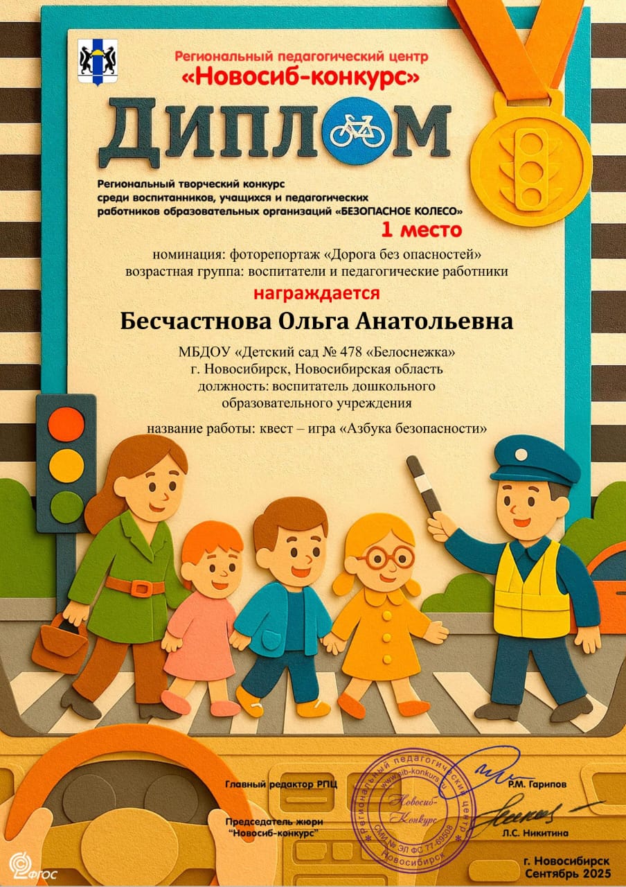 Диплом победителя первой степени профессионального конкурса проектных работ "Воспитываем юного исследователя "